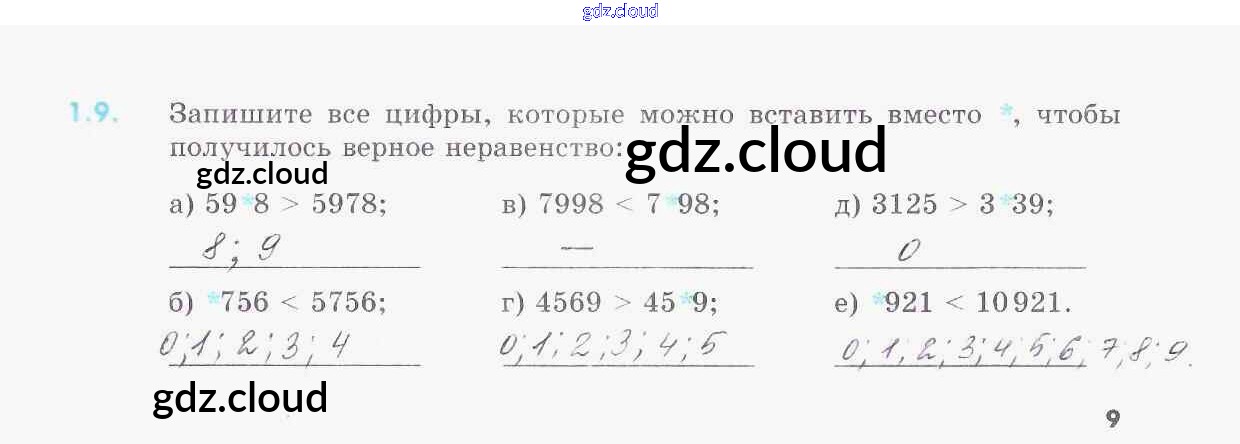 Ответ на задание 1.9 Рабочая тетрадь Математика за 5 (пятый) класс Зубарева УМК 2014 Часть 1, 2