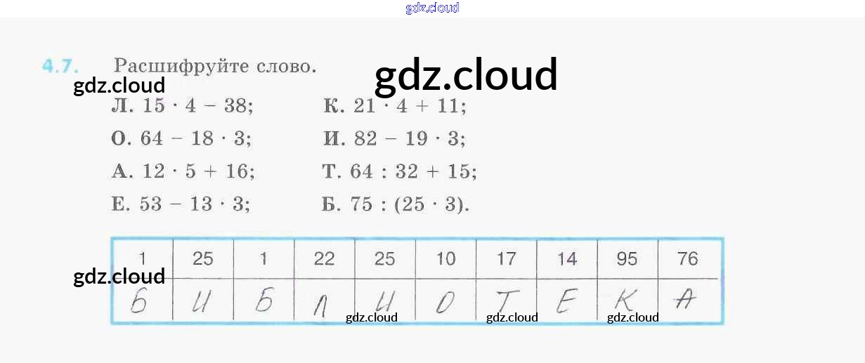 Ответ на задание 4.7 Рабочая тетрадь Математика за 5 (пятый) класс Зубарева УМК 2014 Часть 1, 2