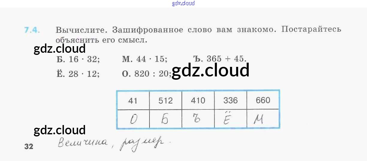 Ответ на задание 7.4 Рабочая тетрадь Математика за 5 (пятый) класс Зубарева УМК 2014 Часть 1, 2