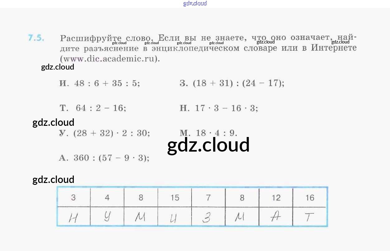 Ответ на задание 7.5 Рабочая тетрадь Математика за 5 (пятый) класс Зубарева УМК 2014 Часть 1, 2