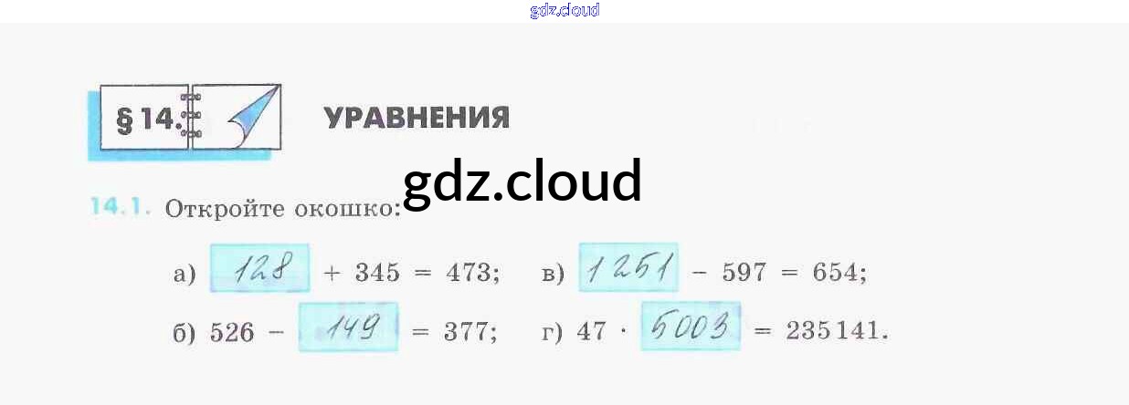 Ответы к §14. Уравнения по Математике 5 класс Рабочая тетрадь Зубарева УМК Часть 1, 2 Мнемозина