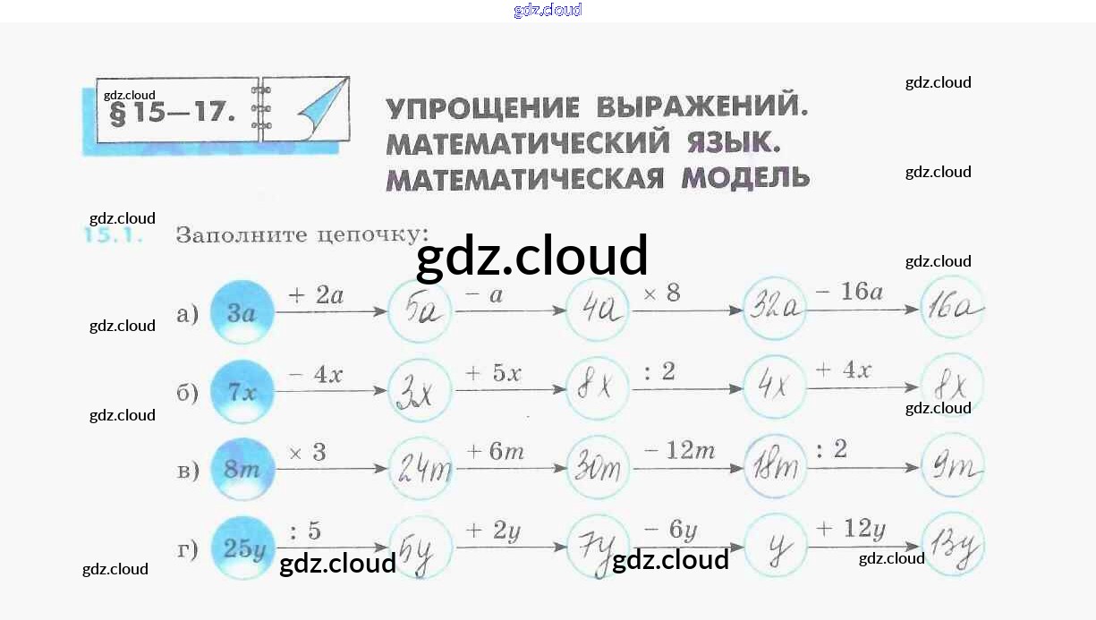 Ответы к §15-17. Упрощение выражений. Математический язык. Математическая модель по Математике 5 класс Рабочая тетрадь Зубарева УМК Часть 1, 2 Мнемозина