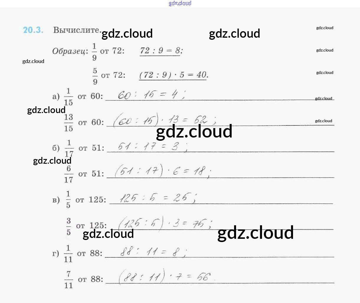 Ответ на задание 20.3 Рабочая тетрадь Математика за 5 (пятый) класс Зубарева УМК 2014 Часть 1, 2