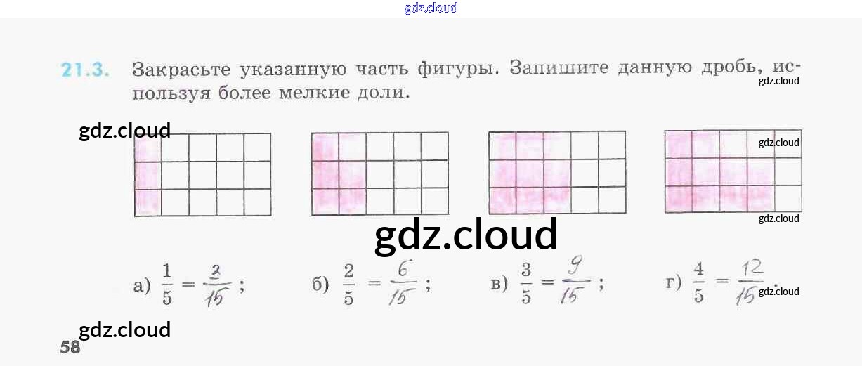 Ответы к §21. Основное свойство дроби по Математике 5 класс Рабочая тетрадь Зубарева УМК Часть 1, 2 Мнемозина