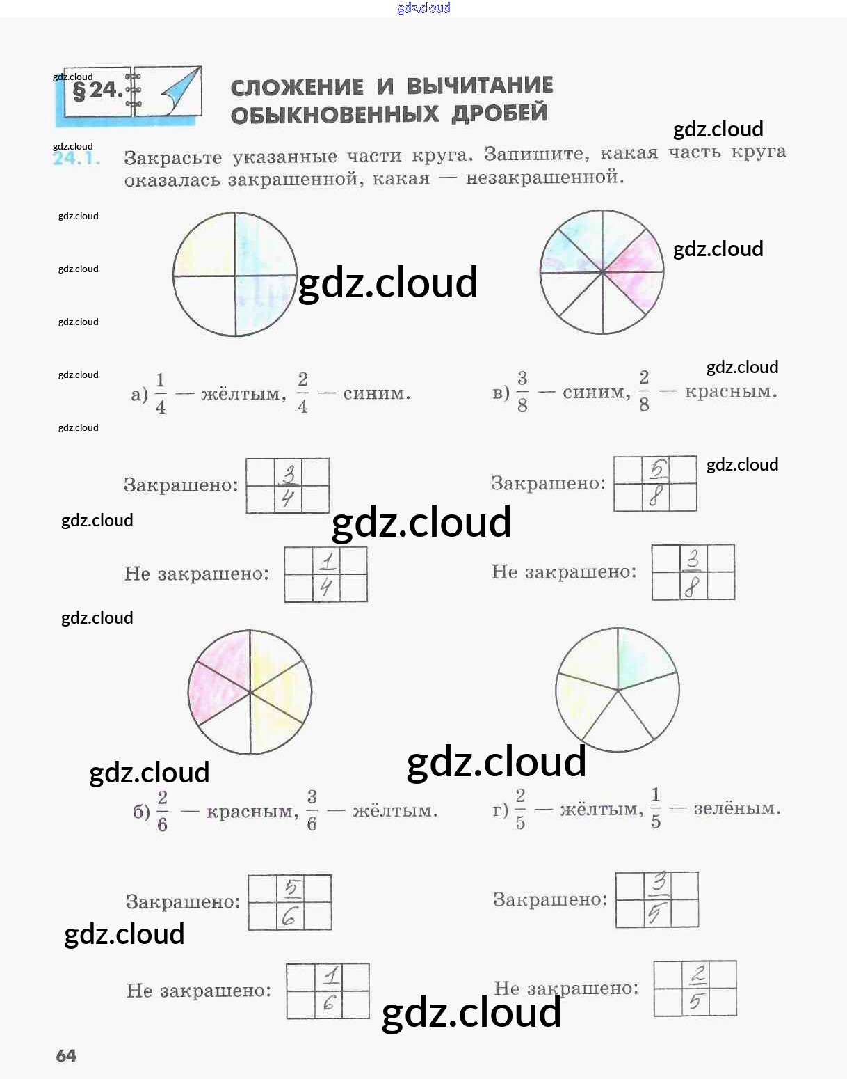 Ответы к §24. Сложение и вычитание обыкновенных дробей по Математике 5 класс Рабочая тетрадь Зубарева УМК Часть 1, 2 Мнемозина