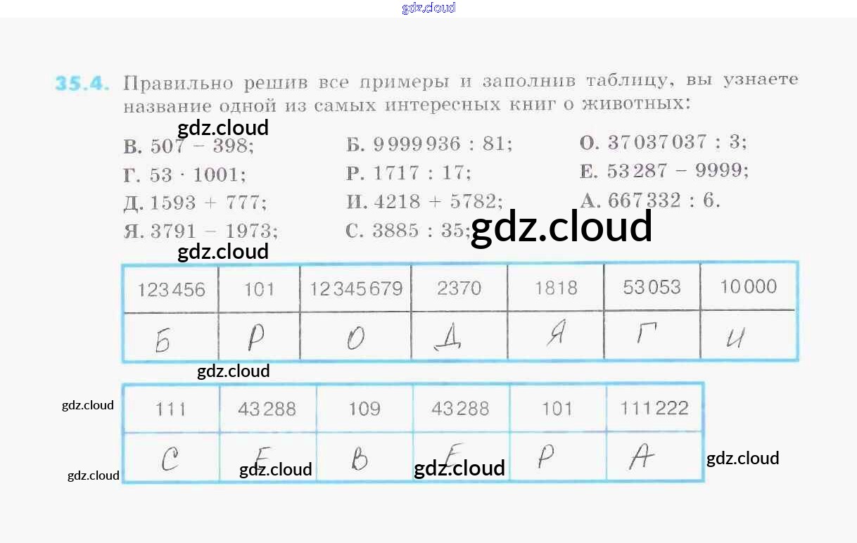 Ответ на задание 35.4 Рабочая тетрадь Математика за 5 (пятый) класс Зубарева УМК 2014 Часть 1, 2