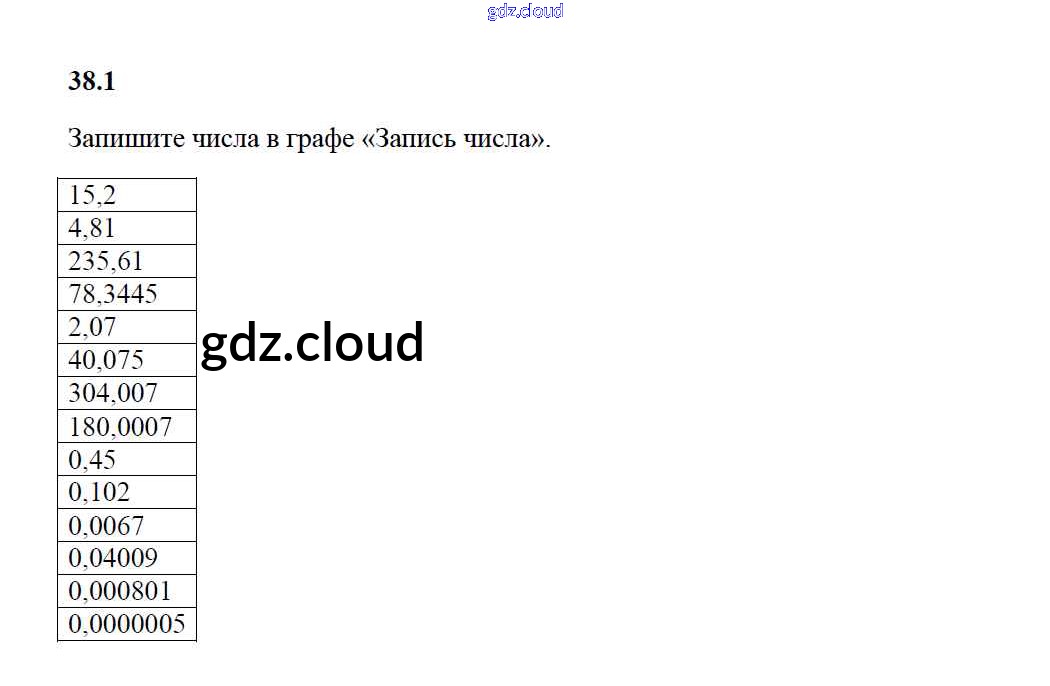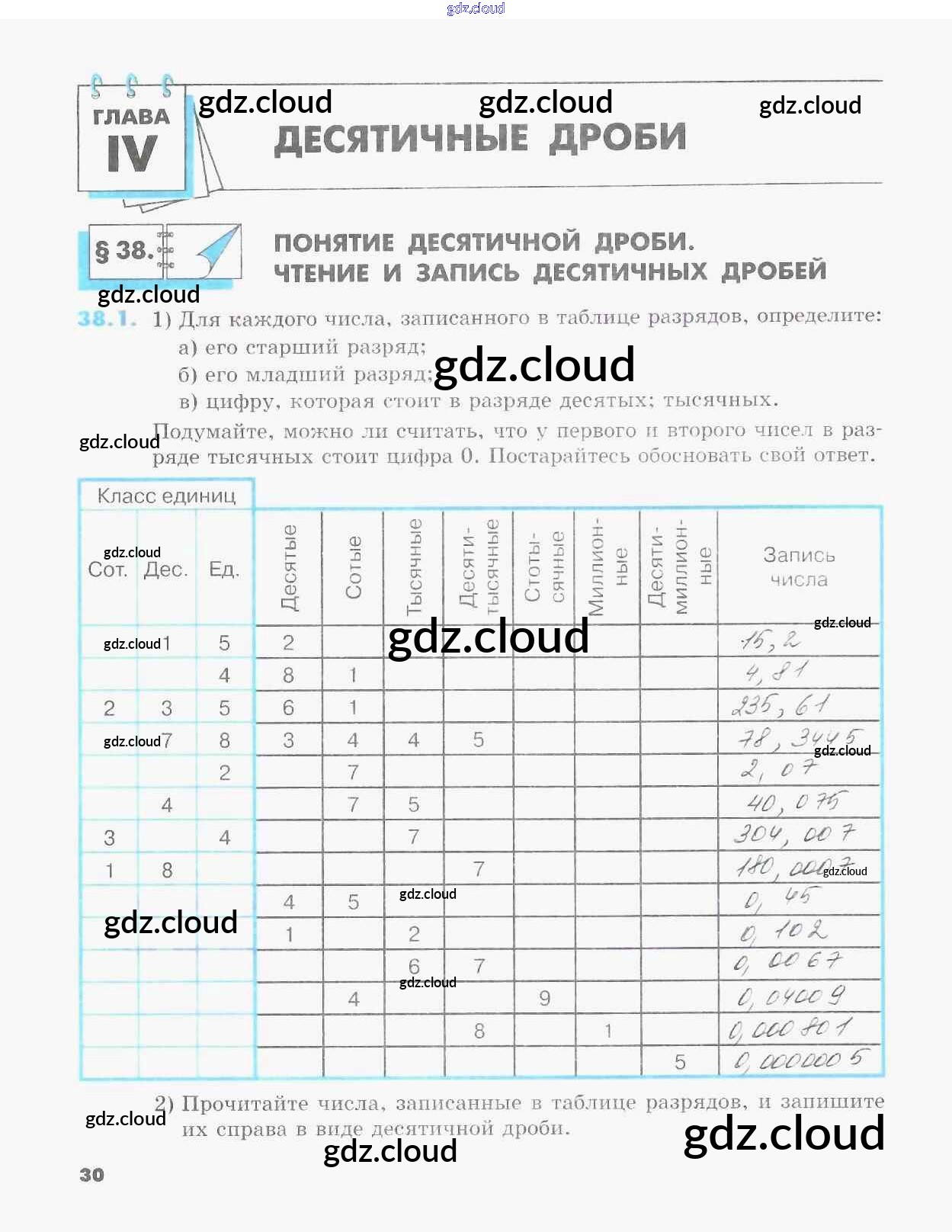 Ответы к §38. Понятие десятичной дроби. Чтение и запись десятичных дробей по Математике 5 класс Рабочая тетрадь Зубарева УМК Часть 1, 2 Мнемозина