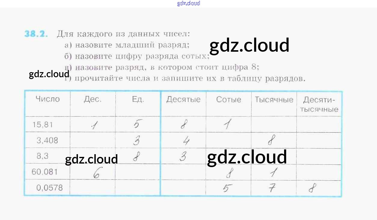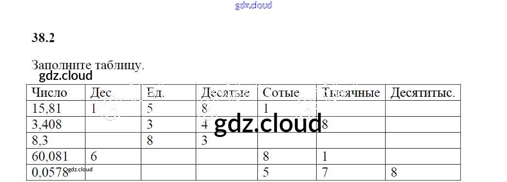 Ответы к §38. Понятие десятичной дроби. Чтение и запись десятичных дробей по Математике 5 класс Рабочая тетрадь Зубарева УМК Часть 1, 2 Мнемозина