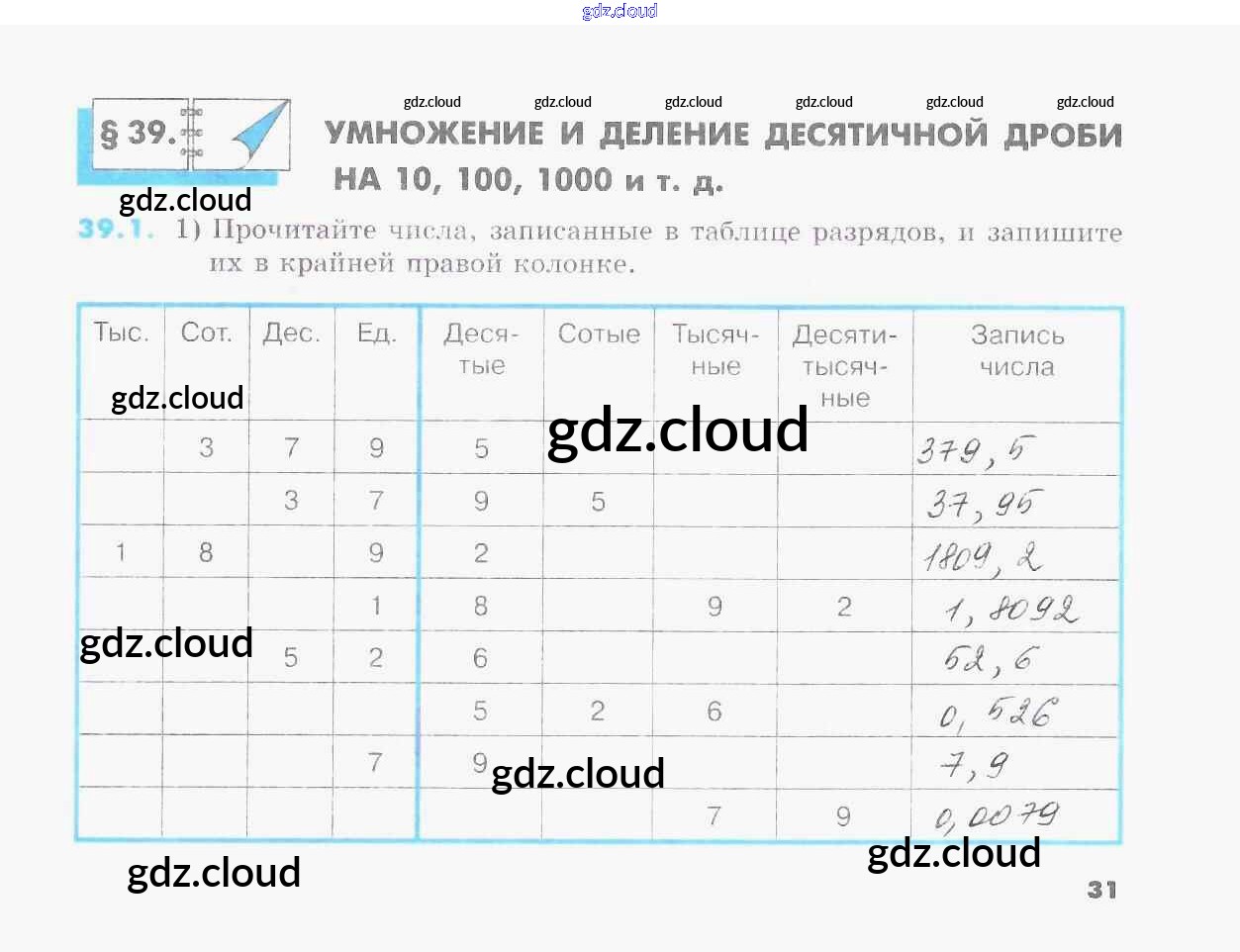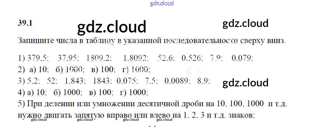 Ответы к §39. Умножение и деление десятичной дроби на 10, 100, 1000 и т. д.. по Математике 5 класс Рабочая тетрадь Зубарева УМК Часть 1, 2 Мнемозина