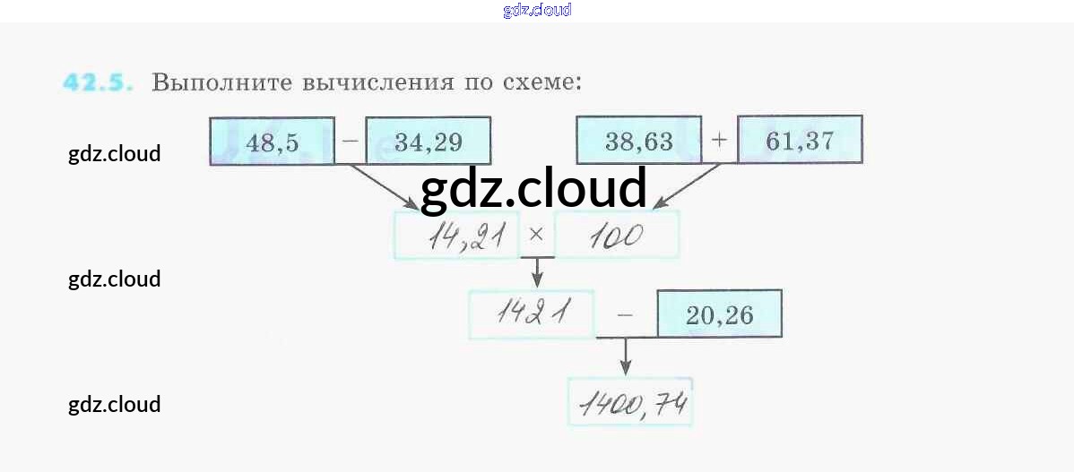 Ответ на задание 42.5 Рабочая тетрадь Математика за 5 (пятый) класс Зубарева УМК 2014 Часть 1, 2