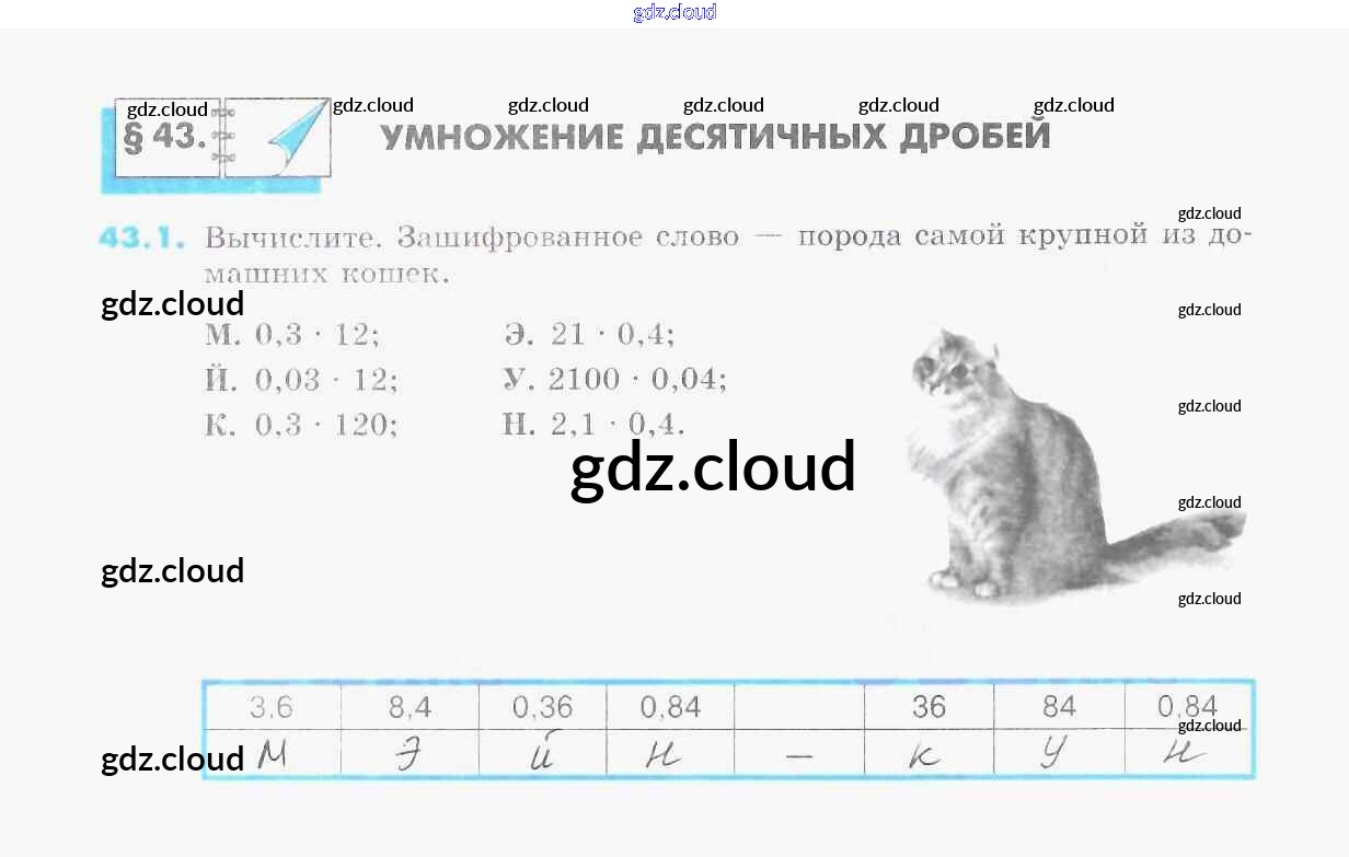 Ответы к §43. Умножение десятичных дробей по Математике 5 класс Рабочая тетрадь Зубарева УМК Часть 1, 2 Мнемозина