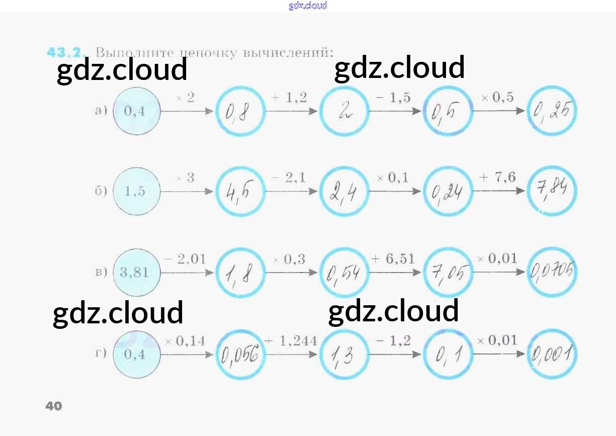 Ответы к §43. Умножение десятичных дробей по Математике 5 класс Рабочая тетрадь Зубарева УМК Часть 1, 2 Мнемозина