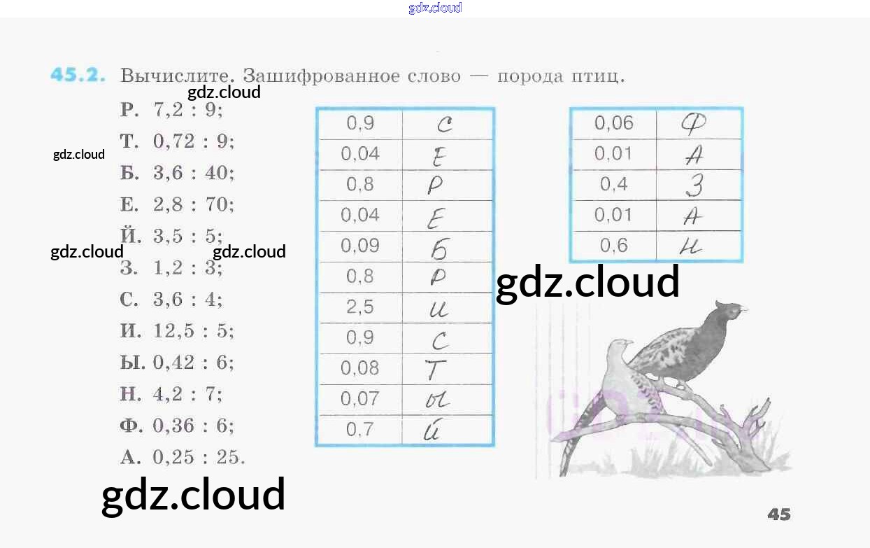 Ответ на задание 45.2 Рабочая тетрадь Математика за 5 (пятый) класс Зубарева УМК 2014 Часть 1, 2