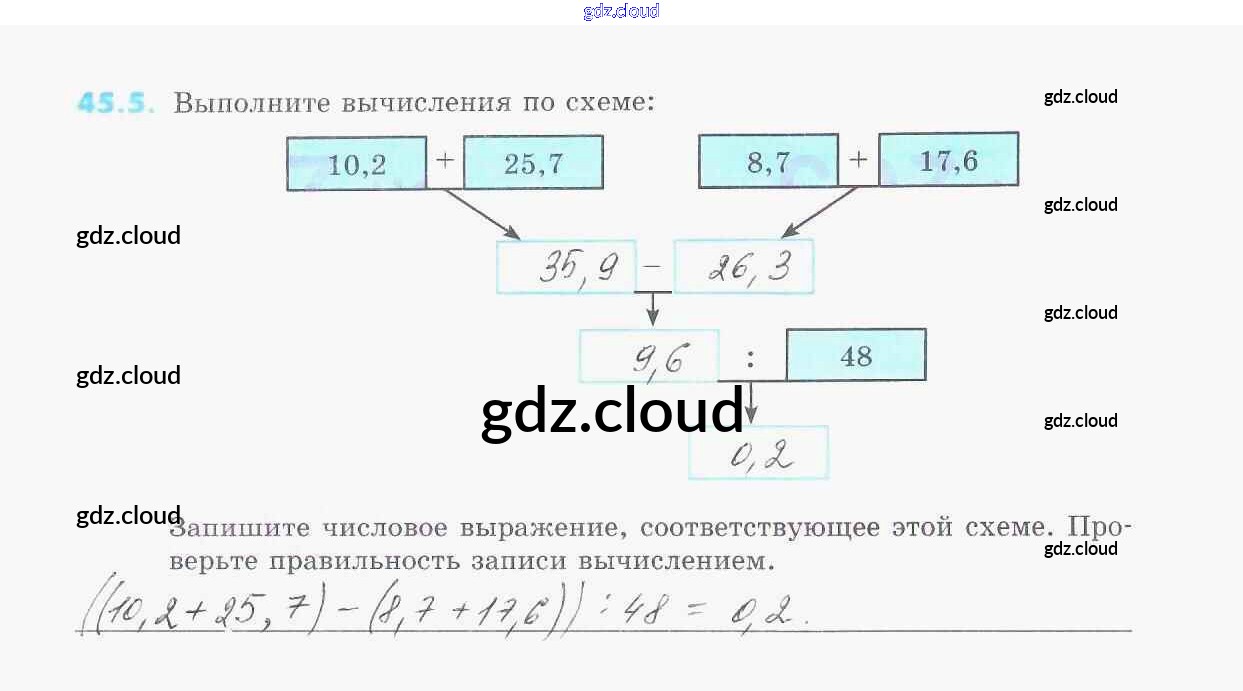 Ответ на задание 45.5 Рабочая тетрадь Математика за 5 (пятый) класс Зубарева УМК 2014 Часть 1, 2