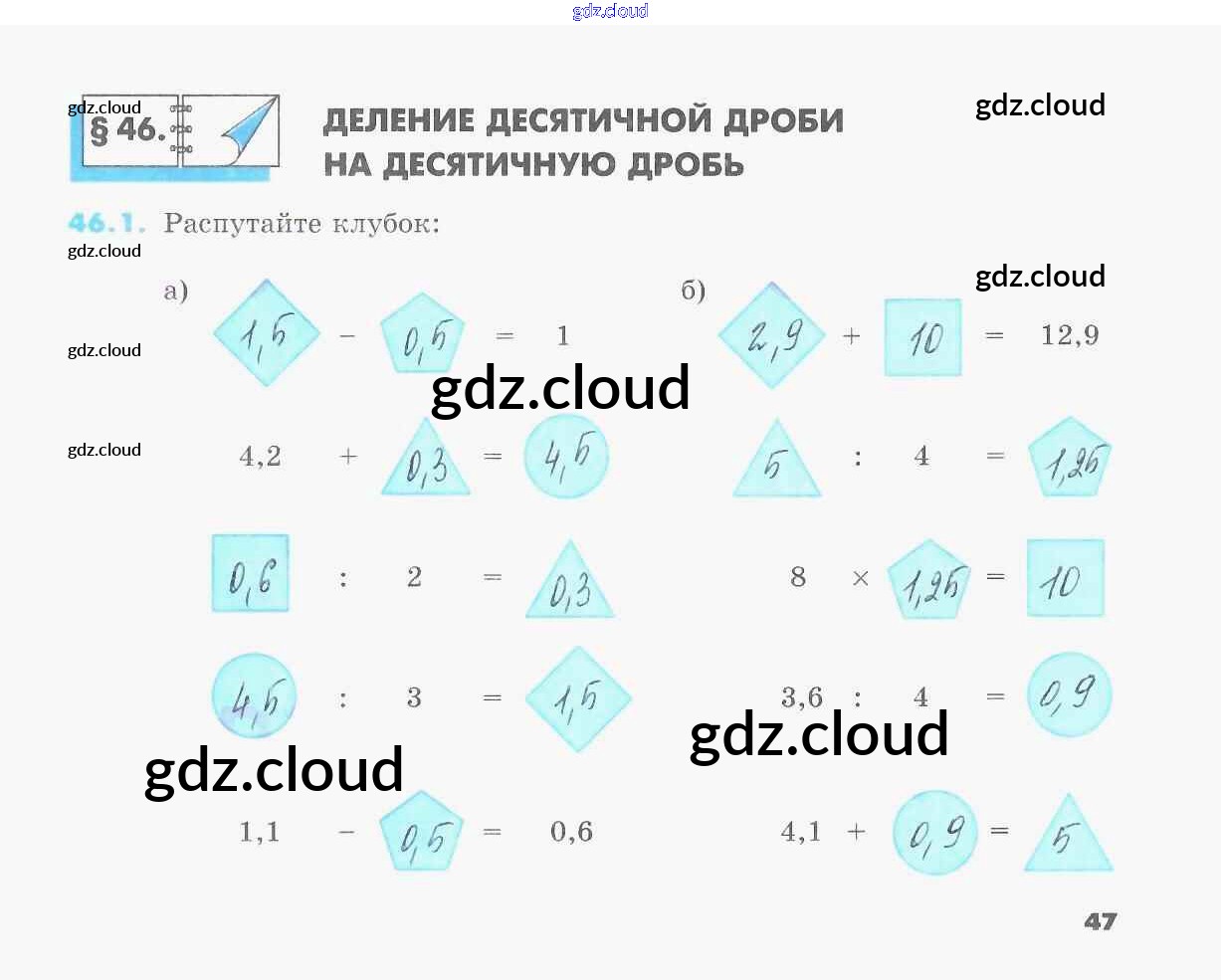 Ответы к §46. Деление десятичной дроби на десятичную дробь по Математике 5 класс Рабочая тетрадь Зубарева УМК Часть 1, 2 Мнемозина