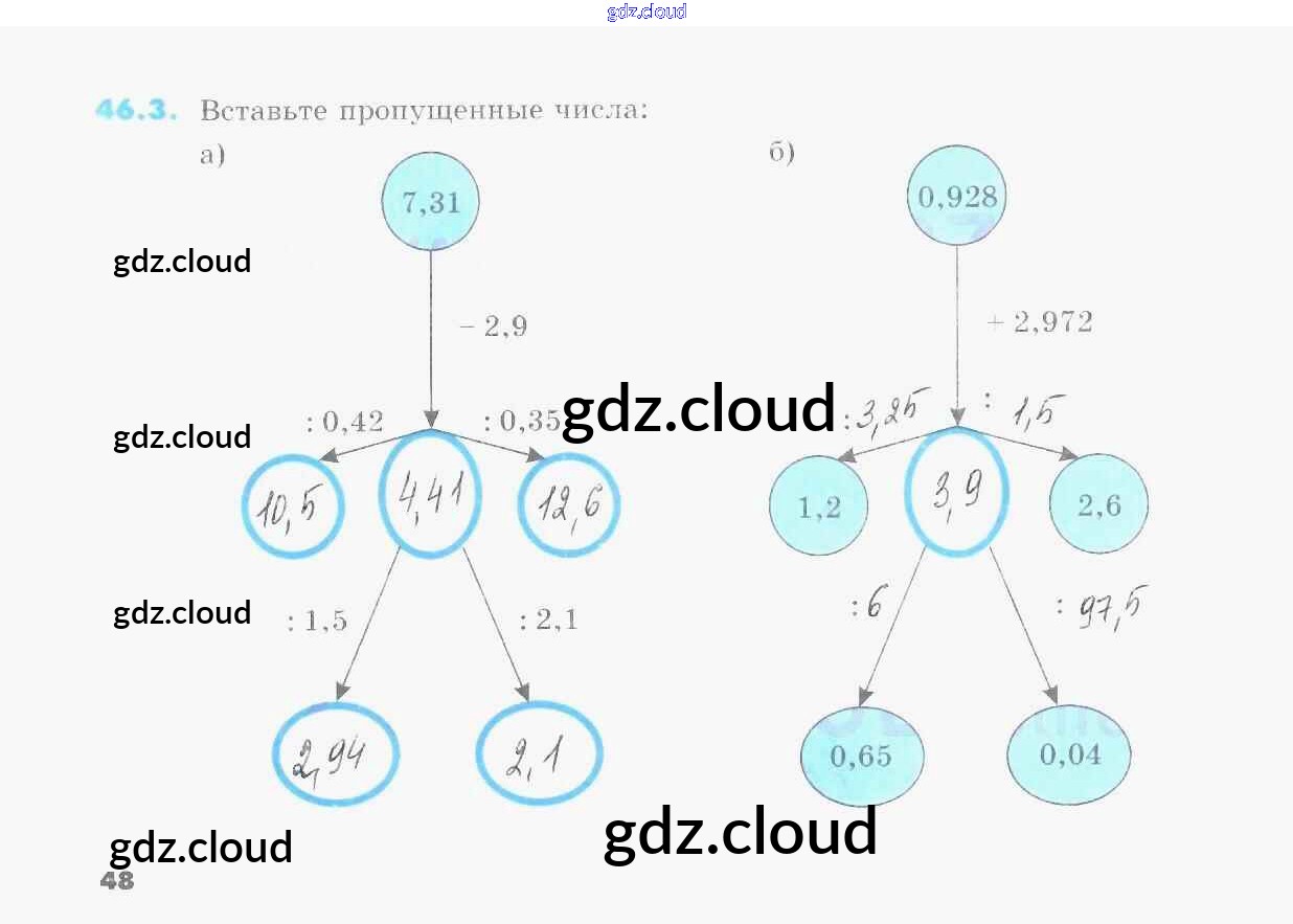 Ответы к §46. Деление десятичной дроби на десятичную дробь по Математике 5 класс Рабочая тетрадь Зубарева УМК Часть 1, 2 Мнемозина