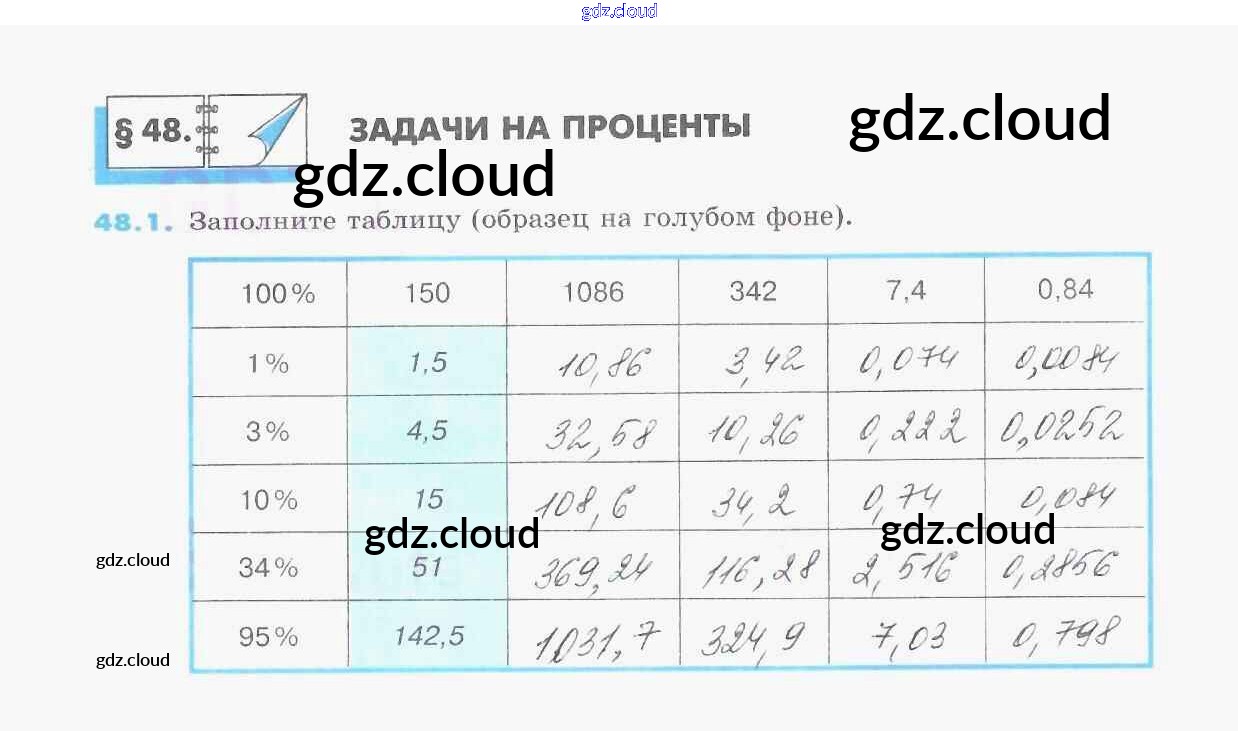 Ответы к §48. Задачи на проценты по Математике 5 класс Рабочая тетрадь Зубарева УМК Часть 1, 2 Мнемозина