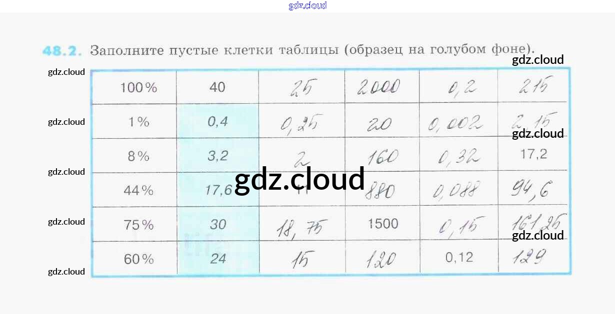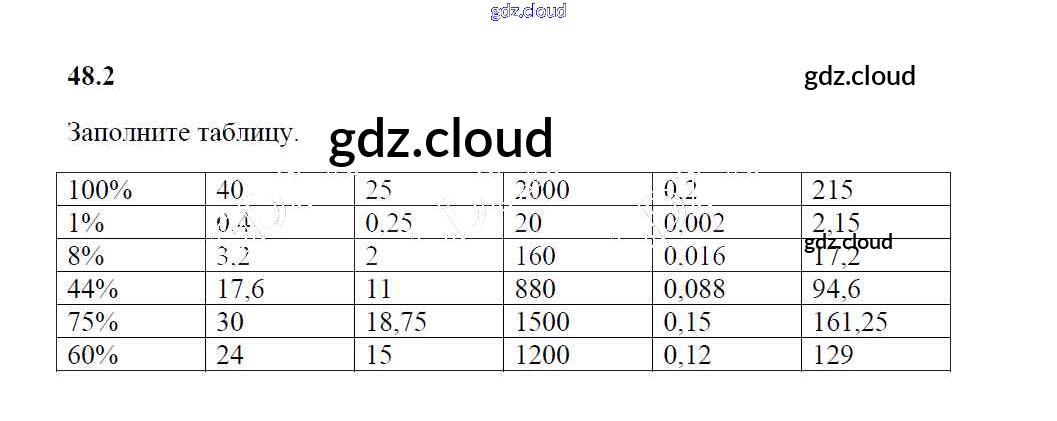Ответы к §48. Задачи на проценты по Математике 5 класс Рабочая тетрадь Зубарева УМК Часть 1, 2 Мнемозина