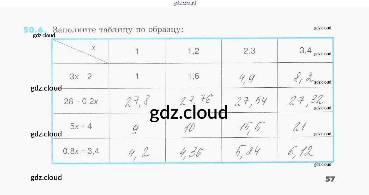 Ответ на задание 50.6 Рабочая тетрадь Математика за 5 (пятый) класс Зубарева УМК 2014 Часть 1, 2 ФГОС онлайн и без номера телефона.