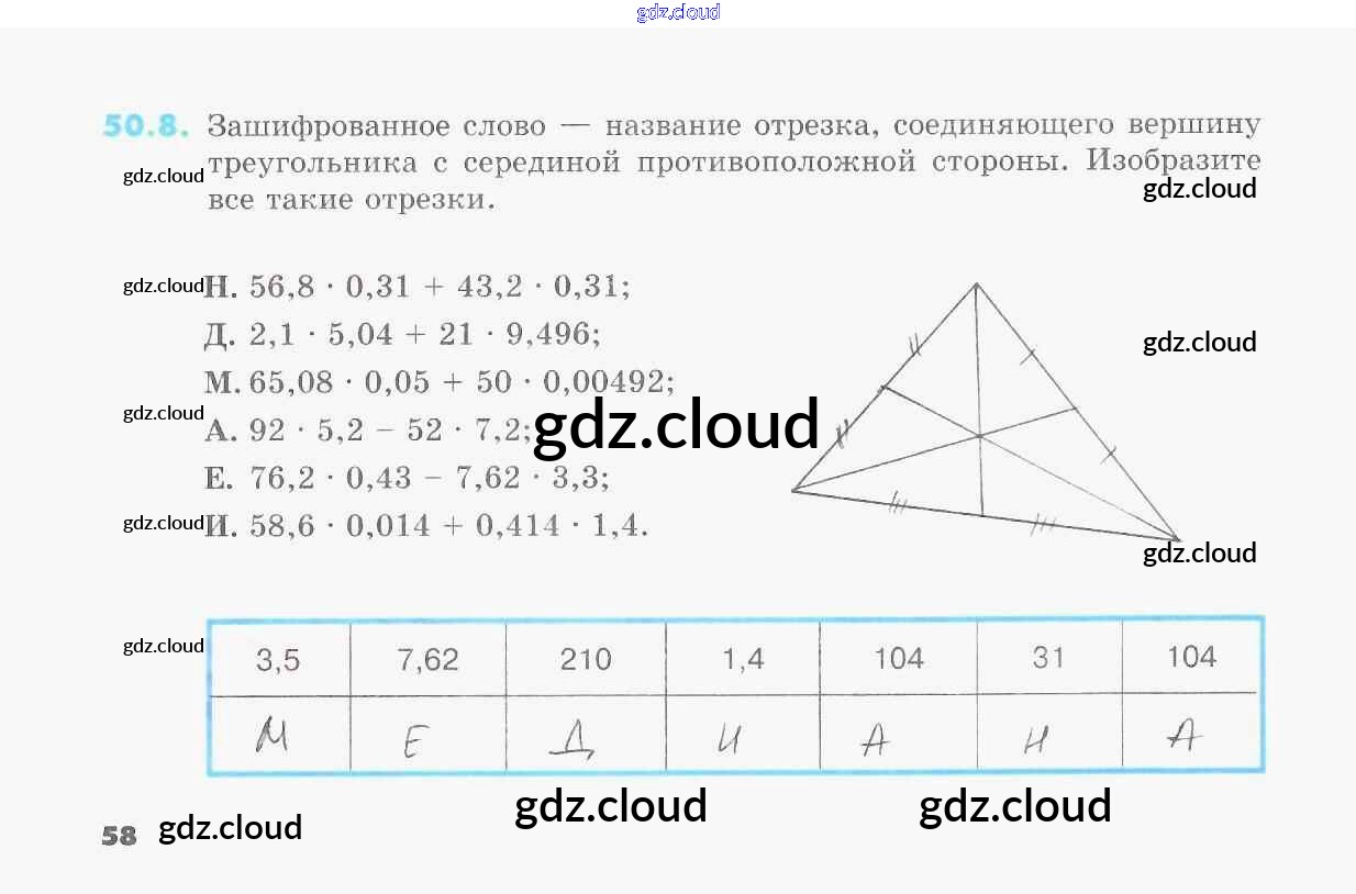 Ответ на задание 50.8 Рабочая тетрадь Математика за 5 (пятый) класс Зубарева УМК 2014 Часть 1, 2 ФГОС онлайн и без номера телефона.
