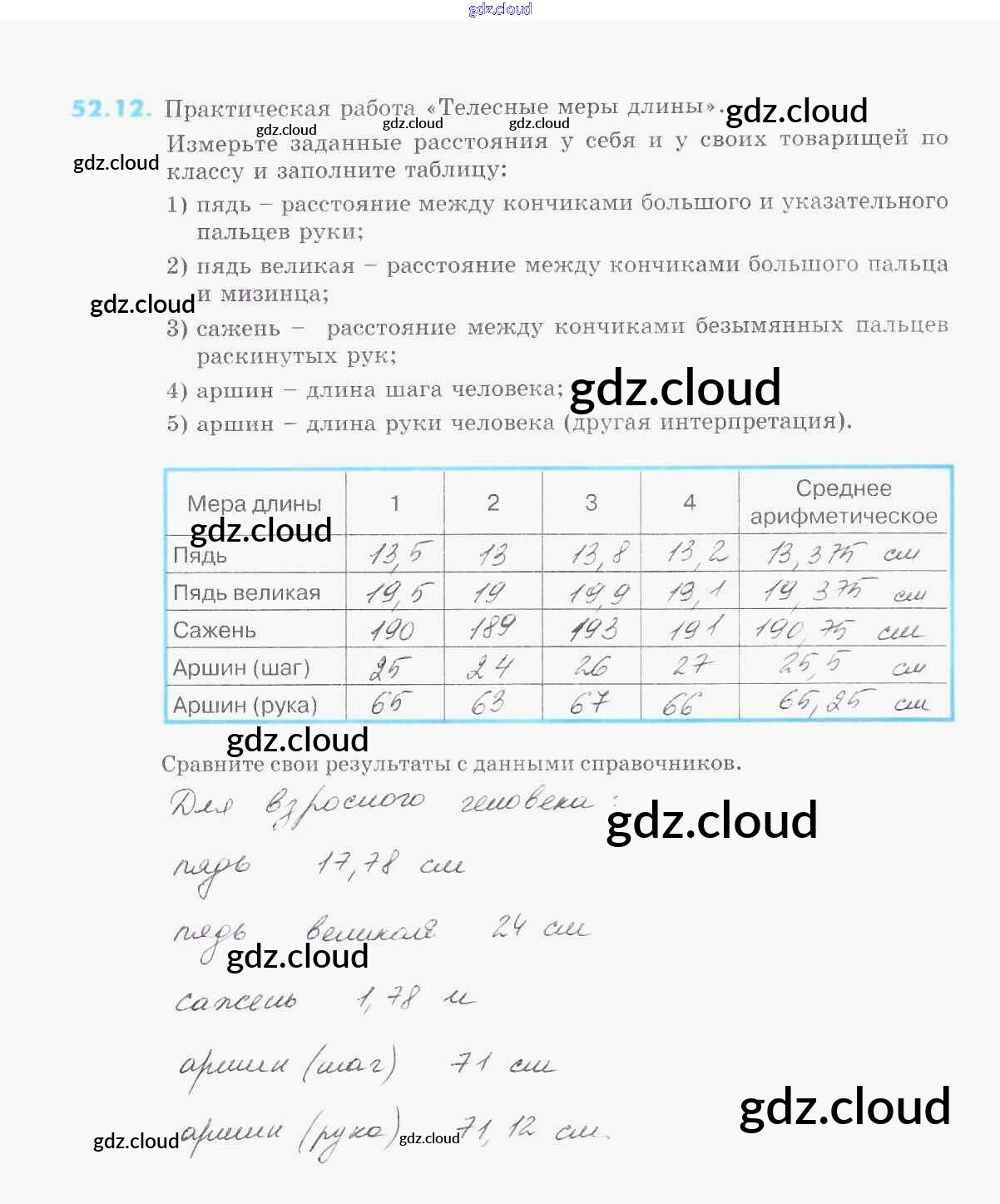 Ответ на задание 52.12 Рабочая тетрадь Математика за 5 (пятый) класс Зубарева УМК 2014 Часть 1, 2