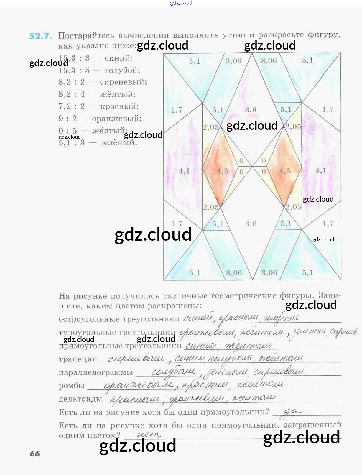 Ответ на задание 52.7 Рабочая тетрадь Математика за 5 (пятый) класс Зубарева УМК 2014 Часть 1, 2