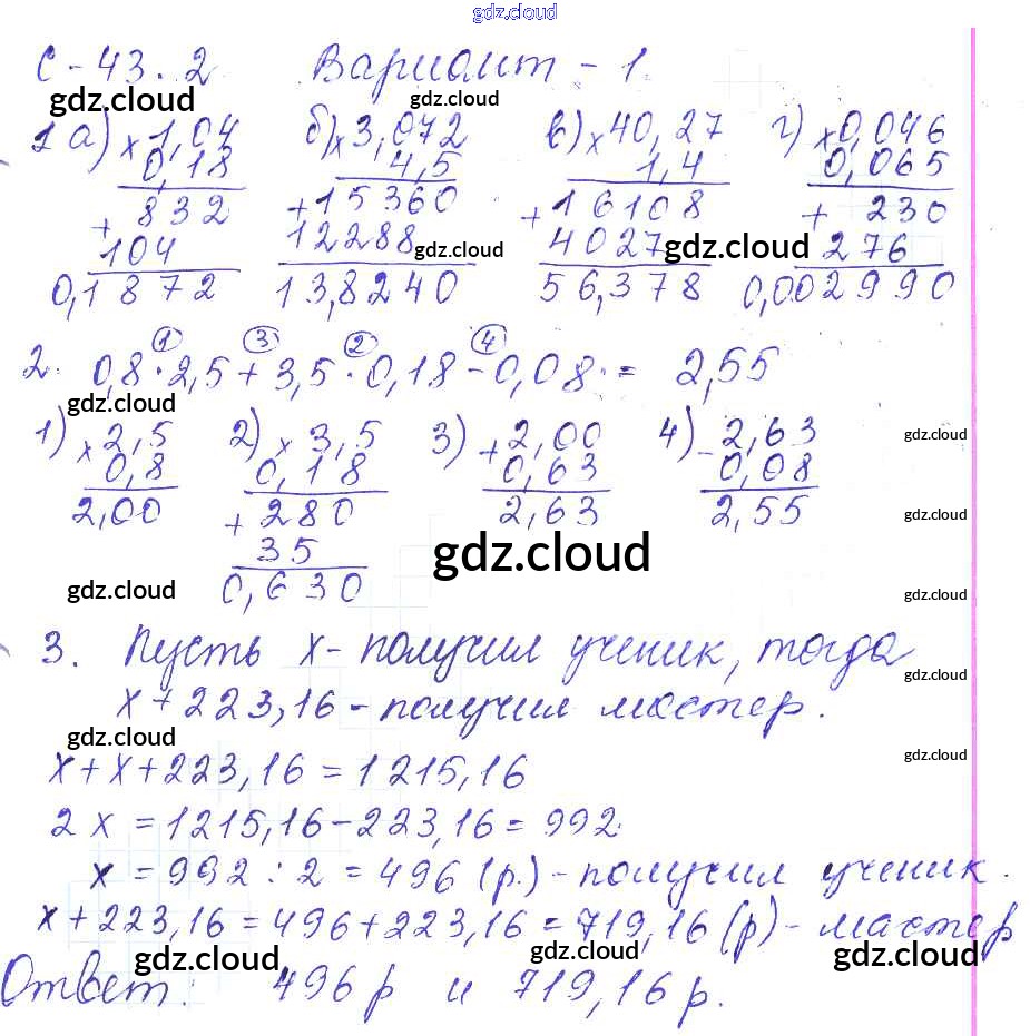 Ответы к СР-43.2 по Математике 5 класс Самостоятельные работы Зубарева Мнемозина