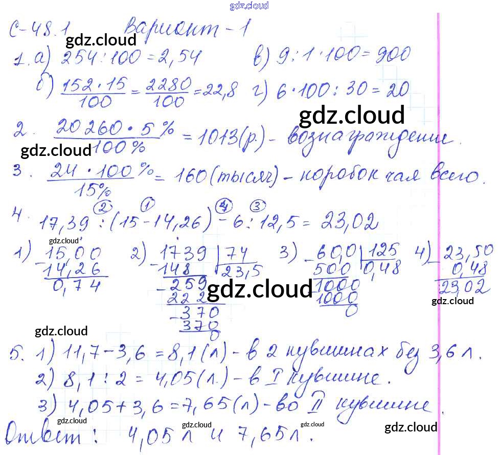 Ответы к СР-48.1 по Математике 5 класс Самостоятельные работы Зубарева Мнемозина