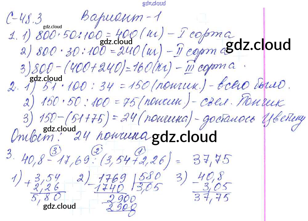 Ответы к СР-48.3 по Математике 5 класс Самостоятельные работы Зубарева Мнемозина