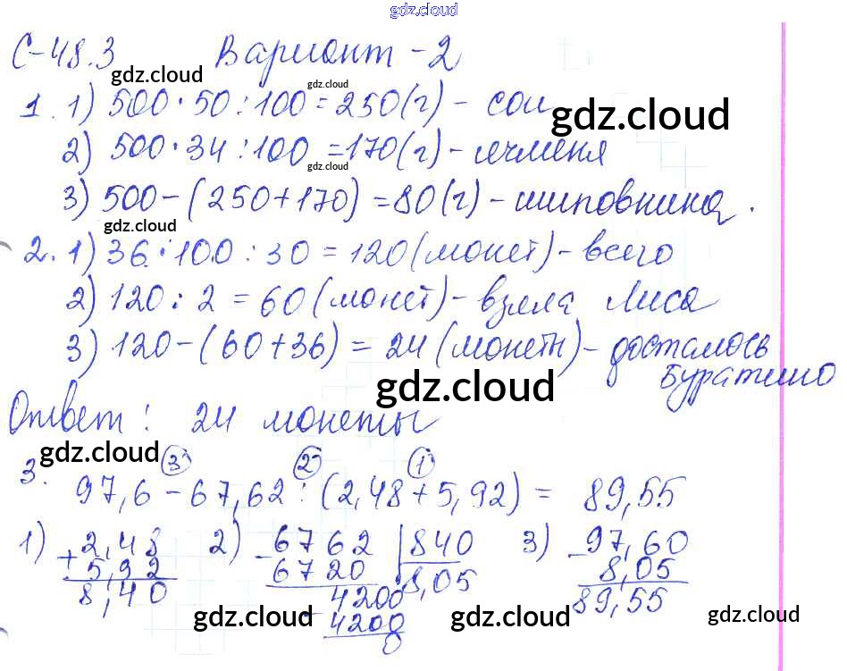 Ответы к СР-48.3 по Математике 5 класс Самостоятельные работы Зубарева Мнемозина