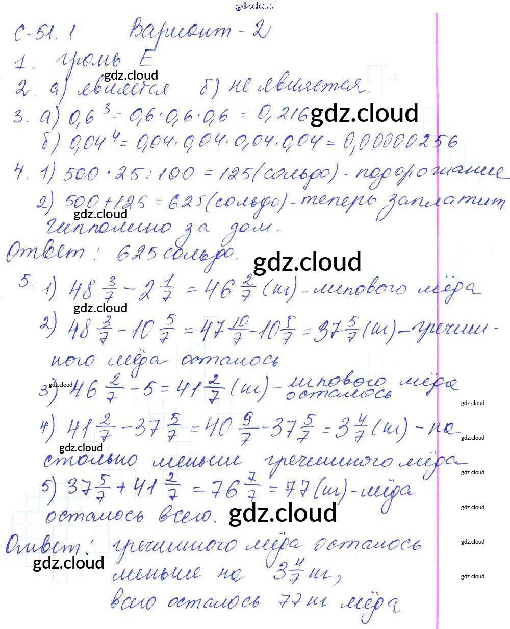 Ответы к СР-51.1 по Математике 5 класс Самостоятельные работы Зубарева Мнемозина