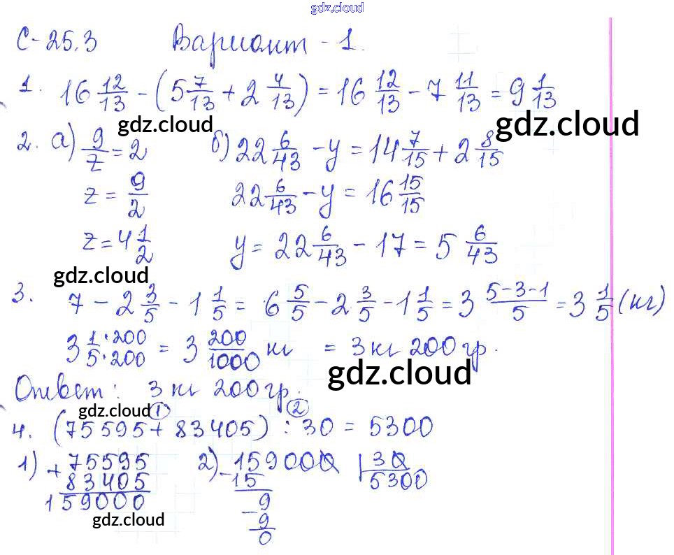 Ответы к СР-25.3 по Математике 5 класс Самостоятельные работы Зубарева Мнемозина