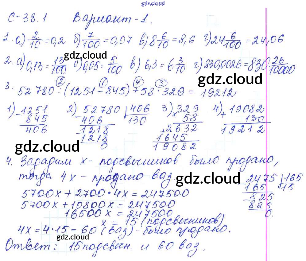 Ответы к СР-38.1 по Математике 5 класс Самостоятельные работы Зубарева Мнемозина