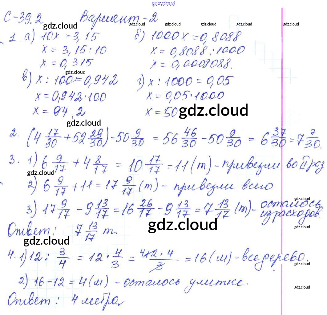 Ответы к СР-39.2 по Математике 5 класс Самостоятельные работы Зубарева Мнемозина