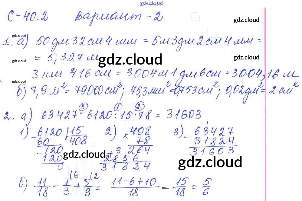 Ответы к СР-40.2 по Математике 5 класс Самостоятельные работы Зубарева Мнемозина