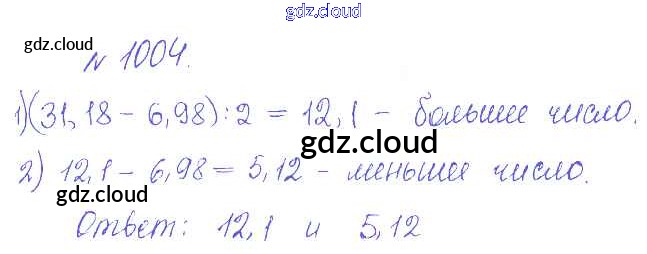 Ответ на задание 1004 Сборник задач и упражнений Математика за 5 (пятый) класс Гамбарин, Зубарева 2011 ФГОС онлайн и без номера телефона.