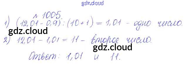 Ответ на задание 1005 Сборник задач и упражнений Математика за 5 (пятый) класс Гамбарин, Зубарева 2011 ФГОС онлайн и без номера телефона.