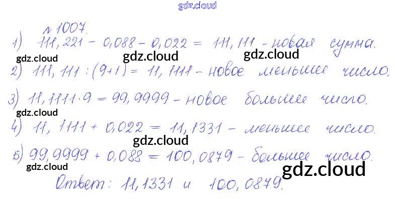 Ответ на задание 1007 Сборник задач и упражнений Математика за 5 (пятый) класс Гамбарин, Зубарева 2011 ФГОС онлайн и без номера телефона.