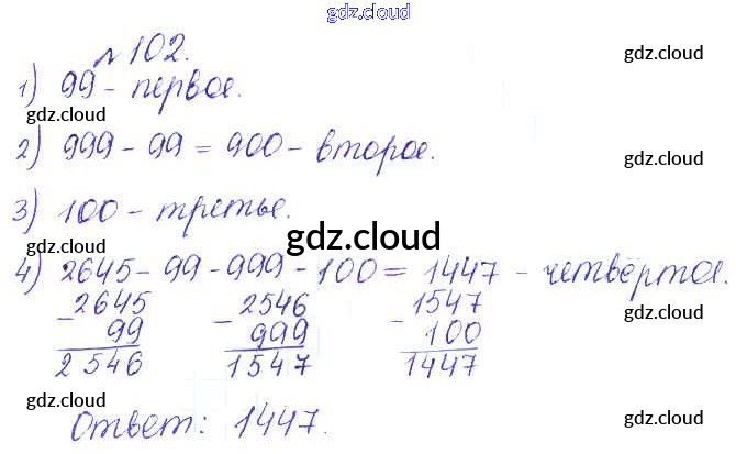 Ответ на задание 102 Сборник задач и упражнений Математика за 5 (пятый) класс Гамбарин, Зубарева 2011 ФГОС онлайн и без номера телефона.