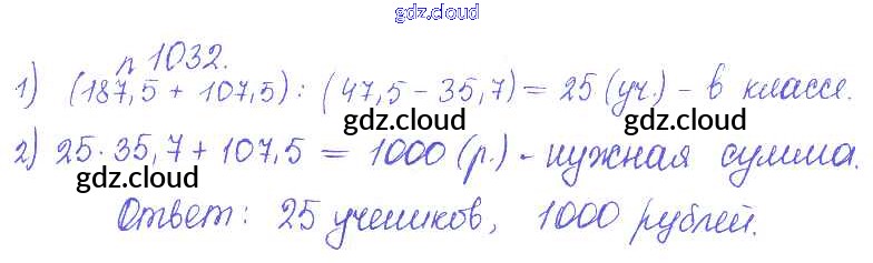Ответ на задание 1032 Сборник задач и упражнений Математика за 5 (пятый) класс Гамбарин, Зубарева 2011 ФГОС онлайн и без номера телефона.