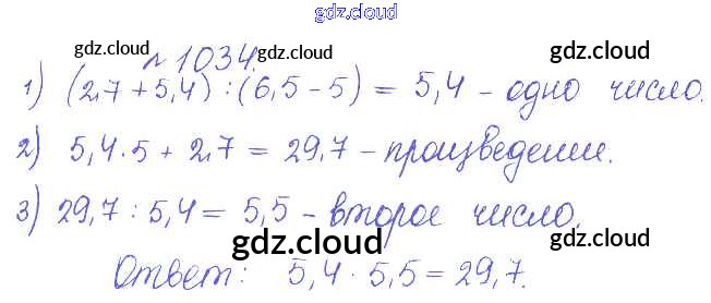 Ответ на задание 1034 Сборник задач и упражнений Математика за 5 (пятый) класс Гамбарин, Зубарева 2011 ФГОС онлайн и без номера телефона.