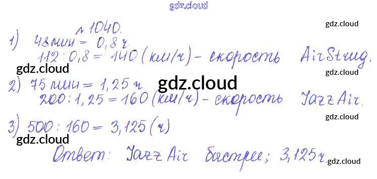 Ответ на задание 1040 Сборник задач и упражнений Математика за 5 (пятый) класс Гамбарин, Зубарева 2011 ФГОС онлайн и без номера телефона.