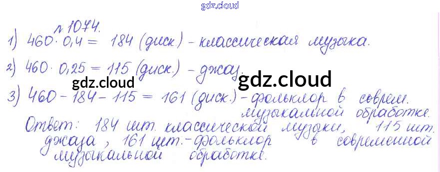 Ответ на задание 1074 Сборник задач и упражнений Математика за 5 (пятый) класс Гамбарин, Зубарева 2011 ФГОС онлайн и без номера телефона.
