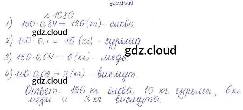 Ответ на задание 1080 Сборник задач и упражнений Математика за 5 (пятый) класс Гамбарин, Зубарева 2011 ФГОС онлайн и без номера телефона.