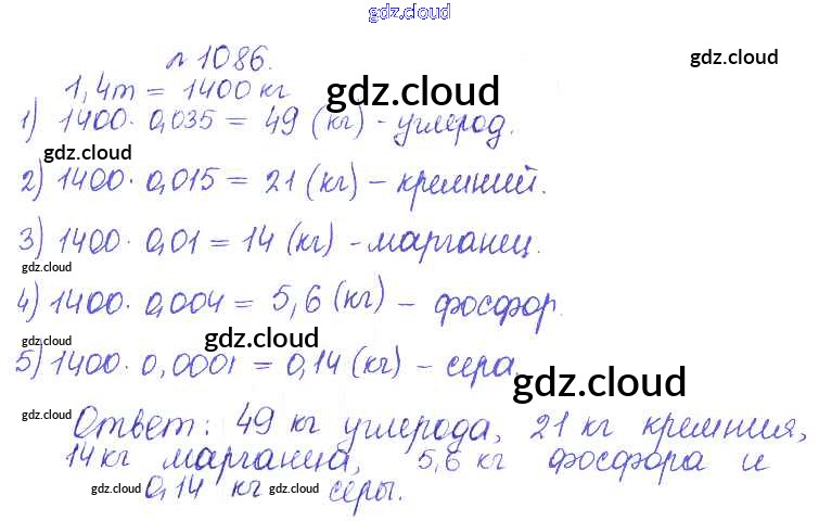 Ответ на задание 1086 Сборник задач и упражнений Математика за 5 (пятый) класс Гамбарин, Зубарева 2011 ФГОС онлайн и без номера телефона.