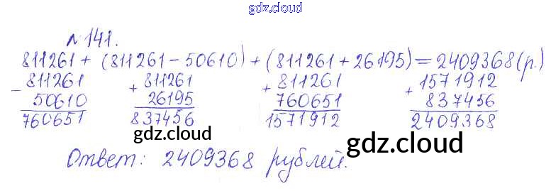 Ответ на задание 141 Сборник задач и упражнений Математика за 5 (пятый) класс Гамбарин, Зубарева 2011 ФГОС онлайн и без номера телефона.