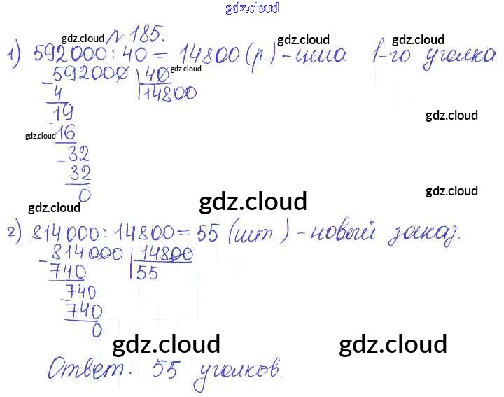 Ответ на задание 185 Сборник задач и упражнений Математика за 5 (пятый) класс Гамбарин, Зубарева 2011 ФГОС онлайн и без номера телефона.