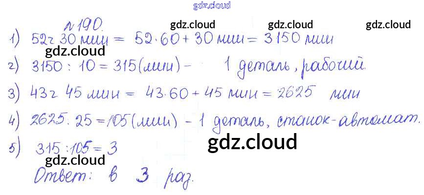Ответ на задание 190 Сборник задач и упражнений Математика за 5 (пятый) класс Гамбарин, Зубарева 2011 ФГОС онлайн и без номера телефона.