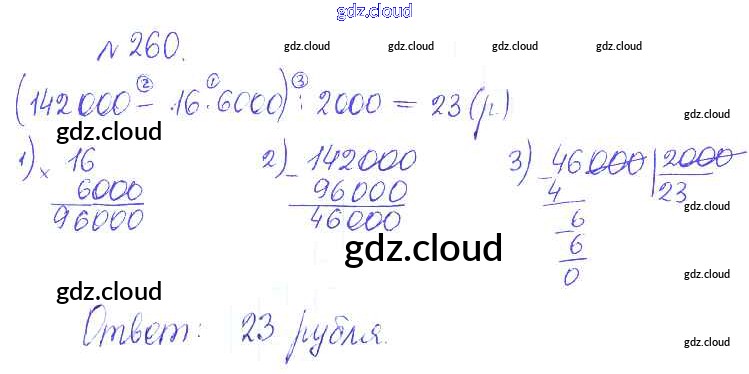 Ответ на задание 260 Сборник задач и упражнений Математика за 5 (пятый) класс Гамбарин, Зубарева 2011 ФГОС онлайн и без номера телефона.