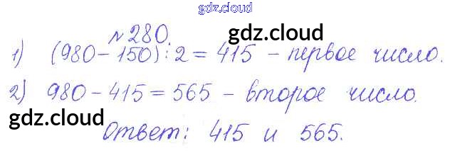 Ответ на задание 280 Сборник задач и упражнений Математика за 5 (пятый) класс Гамбарин, Зубарева 2011 ФГОС онлайн и без номера телефона.